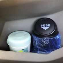 I love these trash bins. Now my 2 year old Knows where to put her trash and she loves it too! I have another car trash box but that’s for bigger things and it’s very useful to me as a mom, but this small one is perfect for the small stuff like gum I want to throw away or the wraps, gas or store receipts.